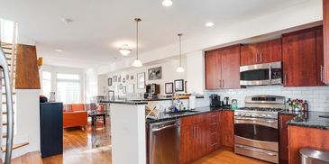 Home in the Salter Mews Townhome community! 3 bedroom, 2.5 bath house, 1 garage parking space included with EV charging, access to the raised landscaped plaza and private 4th floor deck in Queen Village Area!