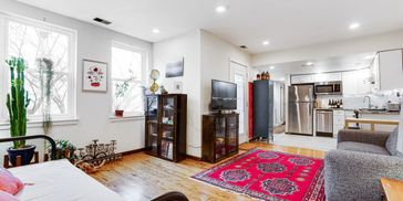 1 bedroom, 1 bath, updated kitchen, full bath with shower/tub combo, tall ceilings and deck. Laundry conveniently located in apartment. With additional storage in the basement in Queen Village!